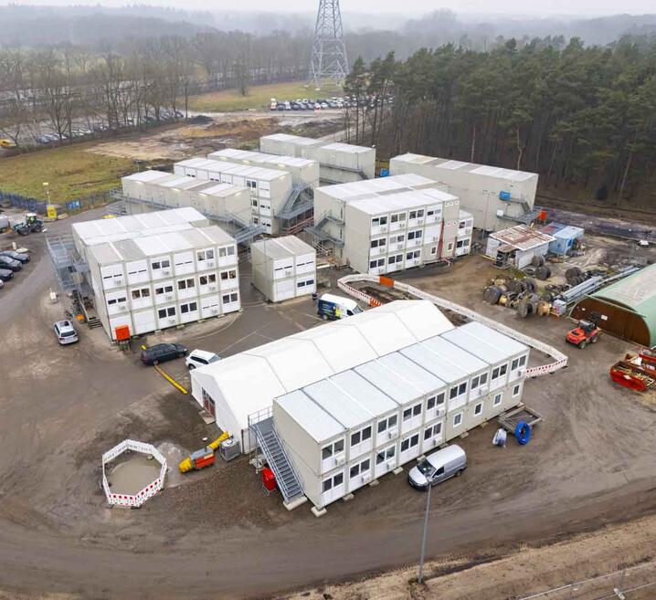 ELA Container wspiera pilotażowy projekt wodorowy RWE realizowany w ramach rewolucji energetycznej Osiem kontenerów budowlanych na dużym placu budowy w Emsland 2025 Przemysł
