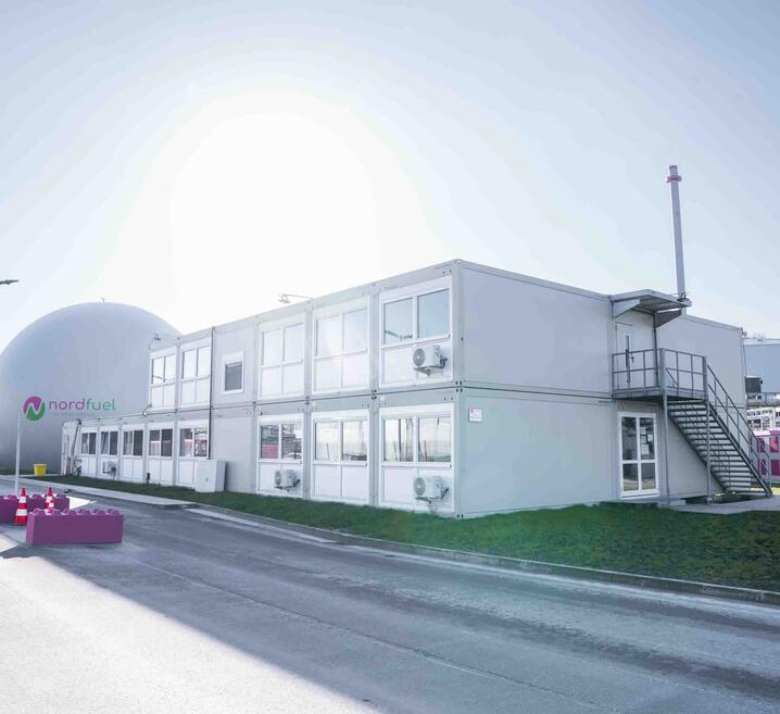 Kontenery biurowe ELA dla Nordfuel we Friesoythe 34 moduły z pomieszczeniami administracyjnymi i sterownią 2025 Budownictwo
