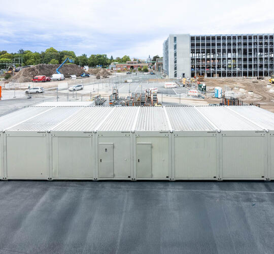 „Dzięki specjalnej statyce pomieszczenia ELA można montować piętrowo, tworząc trzy- lub czterokondygnacyjne obiekty” – mówi Area Sales Manager ELA Simon Harenkamp. „Dla klientów przekłada się to na atrakcyjną oszczędność powierzchni”. Klatka schodowa umożliwia wejście na górne kondygnacje. W tym celu firma ELA w ramach przygotowania do montażu wykonała odpowiednie wycięcia w dachu i podłodze kontenerów.